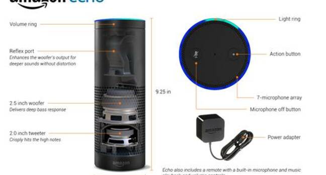 The Echo is a voice-activated 9-inch-high cylinder that connects to your Wi-Fi and will answer spoken questions, play music, and generally hang out in your home listening to everything you say. And processing it in the cloud. All day.