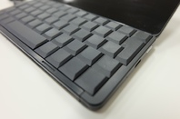 The two big Riddiford design contributions are the new hinge and the new keyboard. The hinge is simplicity itself: it folds out to expand the footprint of the machine. It does leave an odd looking air gap, though. The keyboard on this prototype lacked the membrane needed for a good workout: it shouldn't work at all, actually, but a definitive conclusion wasn't possible yet. But Riddiford's track record in delivering mechanical QWERTY keyboards - in both the Psion Series 3 and Series 5 - gives some confidence.